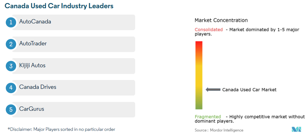 The top players in the Canadian used car market include AutoScout24/AutoTrader.ca, AutoCanada, HGregoire, Clutch, and CARFAX Canada. Scale allows these firms to integrate data analytics across sourcing, pricing, and F&I, producing cost advantages that smaller independents struggle to replicate. AutoScout24’s entry via TRADER acquisition unites marketplace traffic with dealer management systems, hinting at bundled software-as-a-service offerings that could lock in clients. AutoCanada continues to divest itself of under-performing rooftops to release capital for omnichannel initiatives and CPO expansion.
